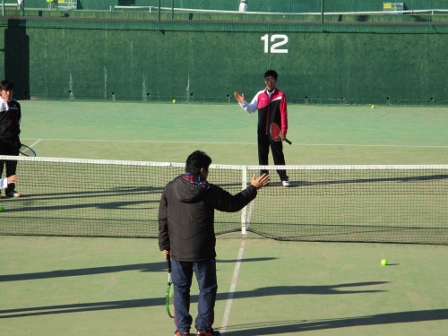ストロークの確実性を上げる、前衛のネットプレーの精度を上げるなど、ダブルスの戦術はまだまだのようです。秋の大会の反省から、ストロークの強化を目的に主にシングルスの練習に時間を割いたので、この時期、ネットプレーの精度にはやはり課題がありました。これから6月の高校総体に向けてダブルスも強化していきたいと思います。