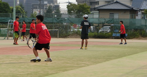 レッスンはストロークやボレー、サーブなどのテニスの基本動作から始まり、最後は社会人相手にシングルスとダブルスのマッチ練習で締めくくりました。