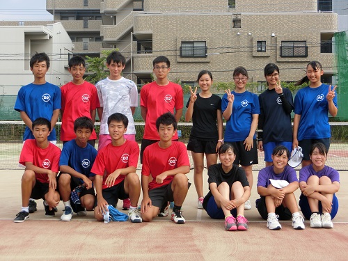 第二高校テニス部女子は、現在1年生7人、2年生9人で、練習に励んでいます。3年生が引退した後、新チームとなり、16人で仲良く練習に参加しています。