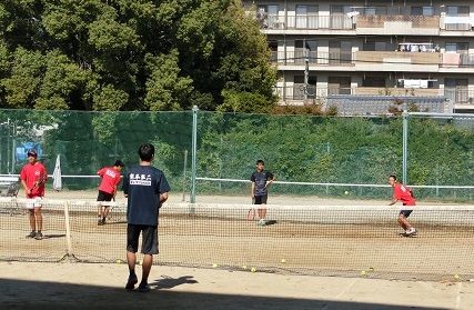 第二高校テニス部の1,2年生は、インカレ出場の掛林先輩、国体選手となった木村先輩と、テニス部OBの先輩から自信と元気を与えてもらっています。先輩たちを目標にこれからも「強いテニス」を追求して練習に励みます。