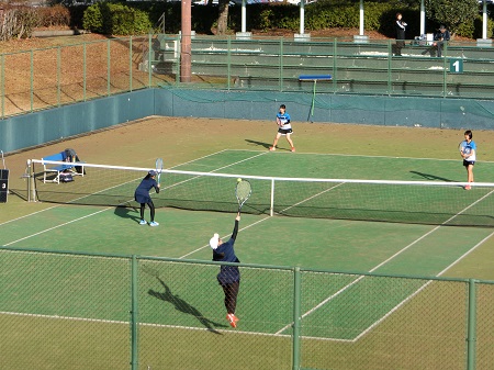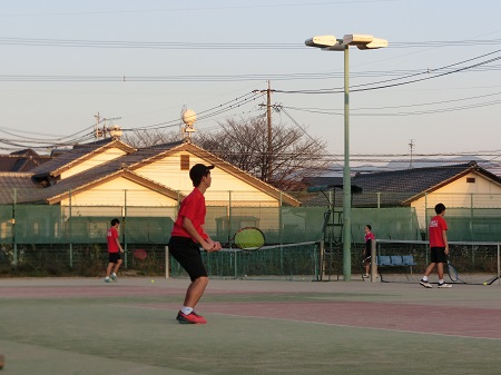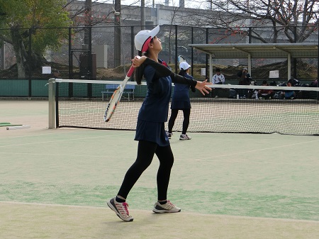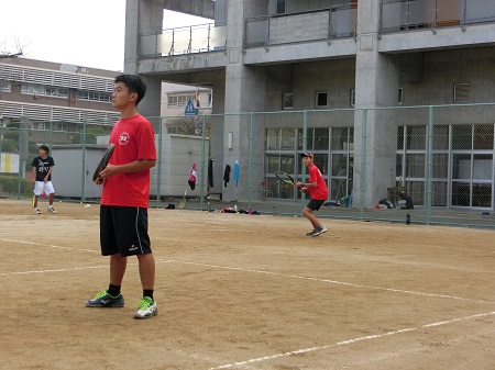 ストロークの確実性を上げる、前衛のネットプレーの精度を上げるなど、ダブルスの戦術はまだまだのようです。秋の大会の反省から、ストロークの強化を目的に主にシングルスの練習に時間を割いたので、この時期、ネットプレーの精度にはやはり課題がありました。これから6月の高校総体に向けてダブルスも強化していきたいと思います。