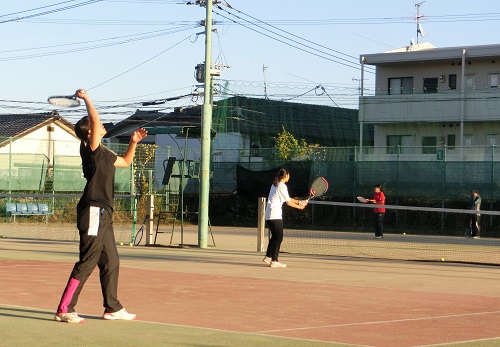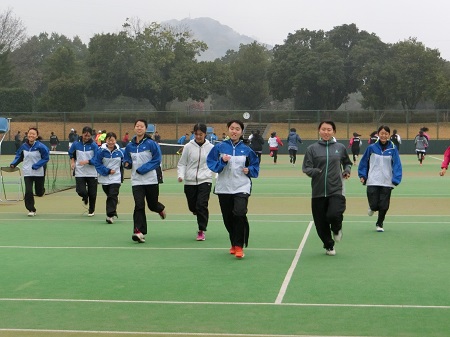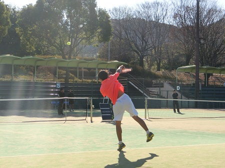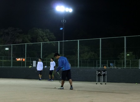 1月4日は、第二高校テニス部の2019年の打ち初めです。新年のスタートは学校近くの熊本県立大学テニスコートで、前半に女子、後半に男子が練習に励みました。年末の28日以来の練習という者も多く、1時間程度の基本練習の後はダブルスのミニゲームを行いました。久しぶりのテニスだったので、初めはミスが目立ちましたが、徐々に慣れて楽しくテニスをすることができました。