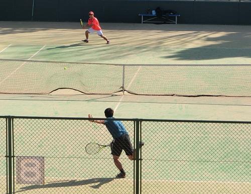 朝は少し肌寒かったものの日中は太陽が顔を出し、テニスにはいい気候となりました。男子は参加者が多く、予選を勝ち上がるのも至難です。小学生や中学生も多く参加しており、体の大きな高校生が小さな小学生相手に苦戦する試合も多く見られます。最近は小学生も多く、錦織圭や大坂なおみといったテニスプレーヤーの世界での活躍がテニス人口の増加に大きく貢献しているようです。