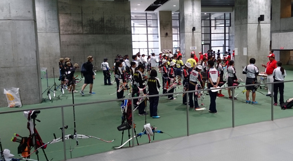 本日は午前中に監督会議が行われ、午後から男女それぞれの弓具及び服装検査と公式練習が行われました。