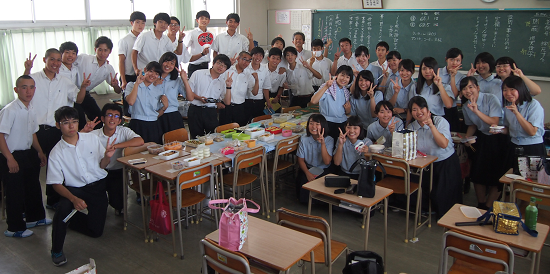 • いつもは男子と女子で分かれてお弁当を食べていますが、今日はクラスが団結していました。
