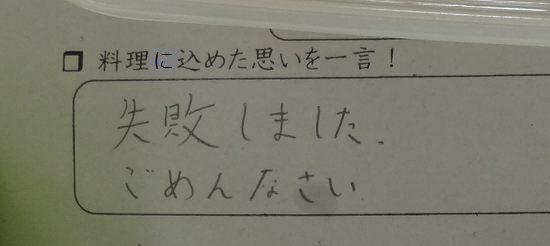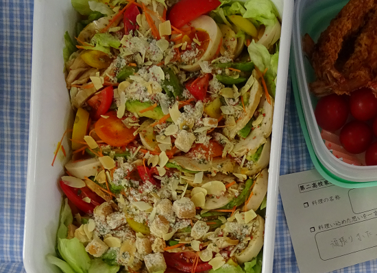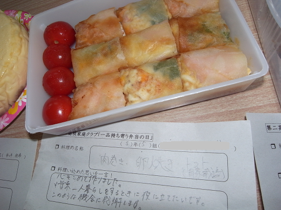 • 今回は、模試前でもあったので、できるだけ簡単にしようと思っていましたが、料理を食べるクラスの人たちのことを思うと、つい時間をかけて作ってしまいました。母がよく「お弁当のおかずを作り過ぎてはいらなくなっちゃった」と言っているのを思い出し、母はいつもこんな気持ちでお弁当を作ってくれているんだなぁと感じ、感謝の気持ちでいっぱいになりました。