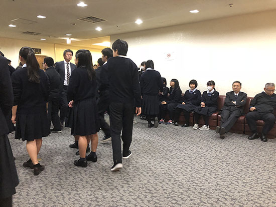 3日目の宿、新宿シティホテルに着き、夕食を待っている生徒たち。
