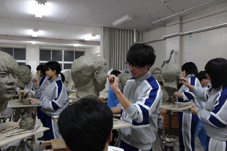 2年生はいよいよ模刻の仕上げ。このあと石膏どりをします。午後7時を過ぎましたが、殆どの生徒が熱心に仕上げ作業に取り組んでいます。この粘り強さが3年生の受験期にいきてくるのだと思います。