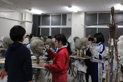 )1・2年生合同のデッサンコンクールを開催しました。3月卒業の先輩たちが指導をしてくれました。真剣なまなざしで制作する姿に頼もしさを感じます。ガンバレ! 1・2年生!!