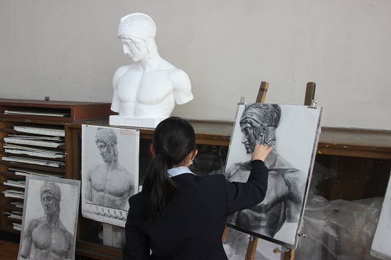 基礎科、油画科、日本画科、彫刻科、デザイン科に分かれ、毎日頑張っていきます。