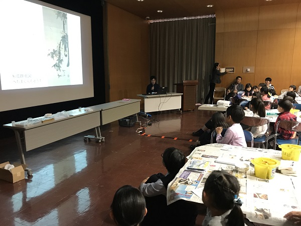 今回は参加された保護者の方にも胡粉を溶いていただいたり、御協力いただきました。大人でもなかなか日本画体験はできないので、喜んでいただけたでしょうか。