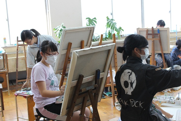 今年も学校説明会が実施され、多くの中学生が来校しました。美術科でも体験授業を行い、野菜のデッサンをしました。ただ描くのではなく、黒い紙に白いコンテで描写をしていきます。美術科の授業に参加してくれた中学生のみなさん、楽しんでもらえましたか?来年会えるのを楽しみにしています。これから受験で大変な時期でしょうが、頑張ってください!