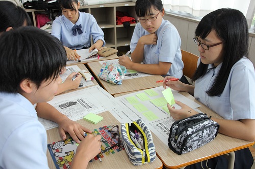 次に留守番チームと出張チームが交代し、同じように二つのグループの話を聞きます。最後にもとの席に戻り、いままで聞いてきた内容を共有します。これで四つの班の内容を知ったことになります。