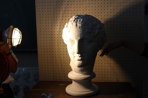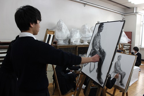 6月は初めての石膏デッサンです。1年生は毎年「ラボルト」という石膏像を描いています。昨年の地震で被害を受けた石膏像ですが、美術科卒業生の皆さんからの援助でこうやって授業を行うことができています。