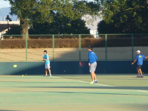 先日、九州ジュニア県予選の校内選考があり、シングルスとダブルスに10人が出場します。練習にも気合が入っています。先日は運動公園で、エントリーメンバーはシングルスの練習を、控え組はダブルスの練習を中心に行いました。