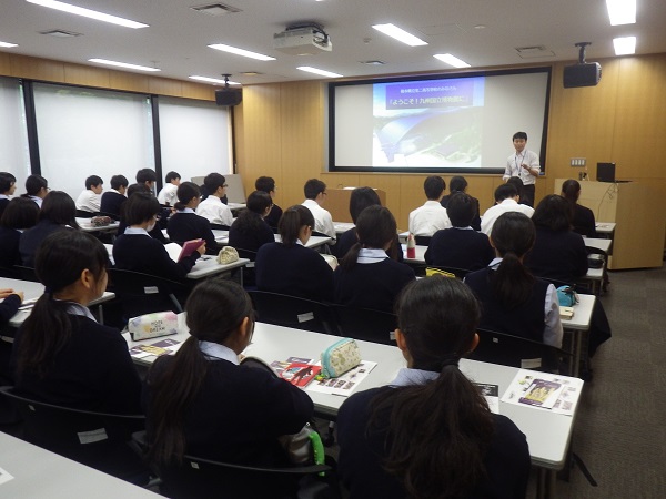 博物館の役割は簡単に表現すると「見る」「守る」「調べる」「広める」ということが出来ます。「守る」は特に文化財保存と修復になります。九州国立博物館では最新の機器を用いた調査研究を行っていること、文化財を守るため建物が免震構造になっていることなど様々な施設・設備があることの説明を受け、間近で見学できました。それらは目先の利益ではなく文化財を100年、1000年守ろうとする意思をもって計画されたことも知ることが出来ました。