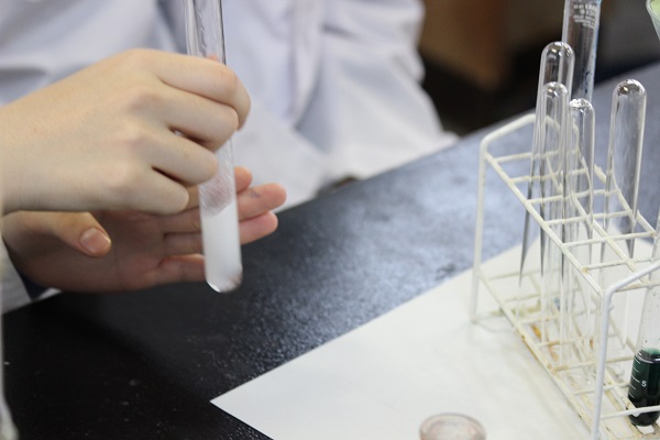 10月21日(土)プラスワン講座の③④限目、美術科1年は化学室でSSH特別授業で絵の具をつくる実験を行いました。