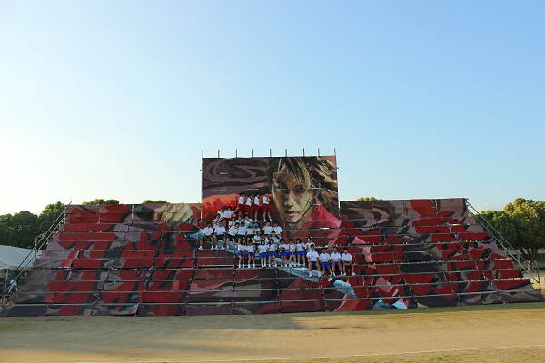今年の団画設置が終わりました。3学年で協力し、それぞれの団が全力で描きました。