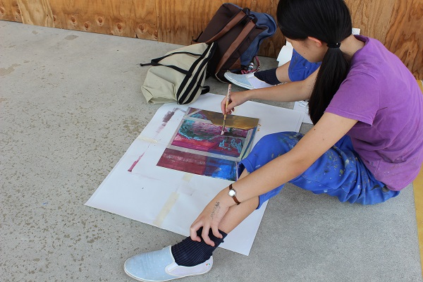 真夏の太陽の光がさんさんと降りそそぐ中、美術科では校内写生大会を行いました。それぞれが校内で絵になる場所を探し、思い思いの表現方法で風景写生を行います。暑いけれど熱くなってよく頑張ってくれました。今年も力作ぞろいです。