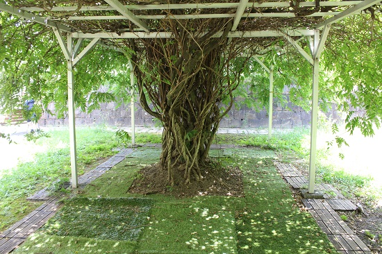 見回り中、きれいな場所を発見しました。教室棟の前の藤です。