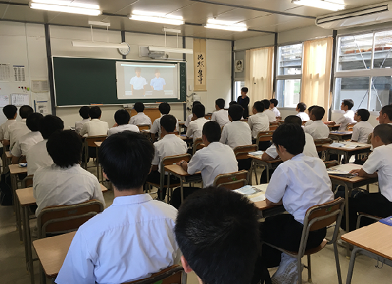(全科)各教室で二高生が作成した映像を見てもらいました。