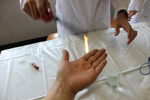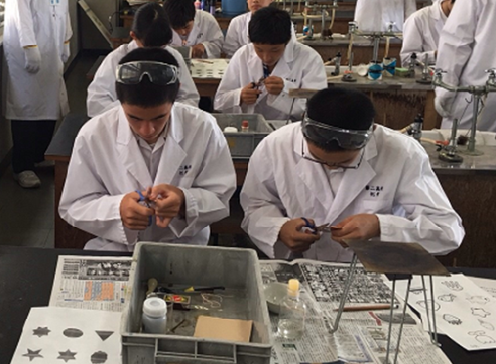 化学部をはじめ科学系部活動の生徒たちはとても親切に実験の内容や意味を教えてくれました。