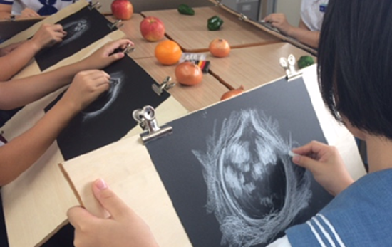 (美術科)「有色下地にコンテで野菜を描いてみよう」