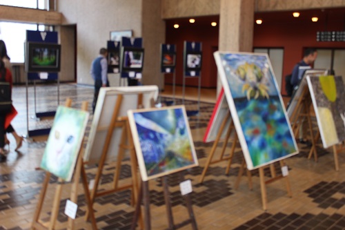 ホワイエでは写真部、普通科美術部、美術科美術部の作品が展示され、文化祭の気分を盛り上げました。