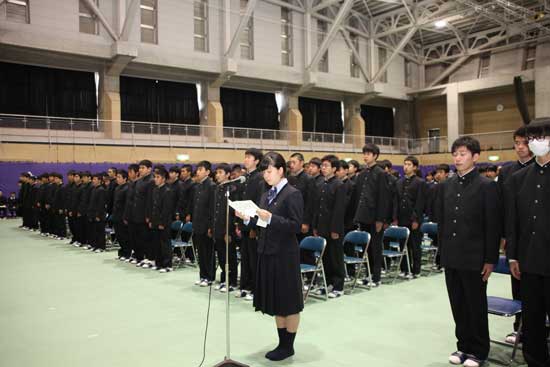 3月1日(木)第54回卒業証書授与式が挙行されました。2年ぶりに本校体育館で卒業式が行われ、普通科322人、理数科41人、美術科39人が母校を巣立ちました。最後は式典リーダーの指揮のもと三綱領唱和を行い、皆で肩を組んで生徒歌を歌いました。思い出に残る、感動的な卒業式となりました。