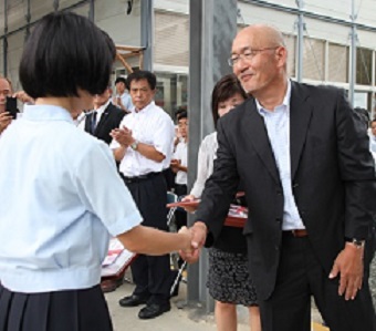 本校同窓会(りんどう会)からPTAにバスを寄贈していただきました。7月20日(木)に同窓会とPTAの皆様、本校生徒及び職員が出席して、贈呈式を行いました。バスのデザインは2年美術科の田上さんと原田さんによるものです。写真を御覧のとおり、本校ならではの若さ溢れるものとなっています。このバスを活用して、部活動などの校外活動をこれまで以上に活発に行い、生徒の皆さんが活躍してくれると思います。