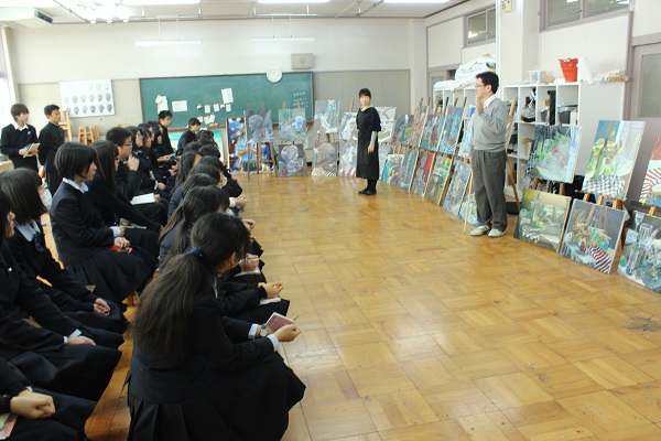 皆緊張していた様子でしたが、さすがの表現力です。見ていて楽しくなる発表ばかりでしたよ。内容もアートとは何か?絵がうまくなるためには?など美術科ならではのものばかり。よく頑張りました。
