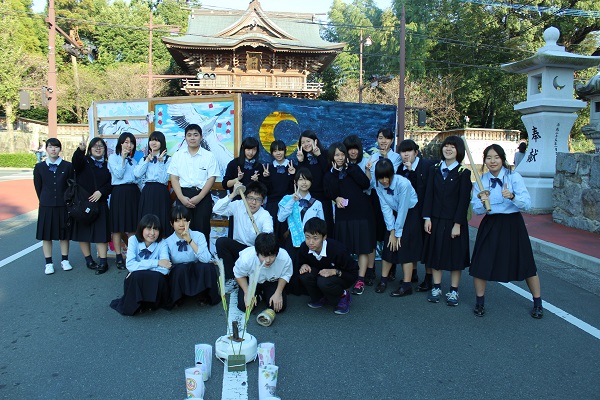 健軍灯篭祭りにボランティアで参加しました。1、2年生で巨大な灯篭を制作しました。時間が無い中、急ピッチで制作し何とか完成。それぞれのグループで協力してよく頑張りました。とても綺麗でしたよ。