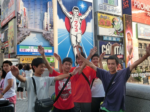 夕方は自由時間をもらい、近くの道頓堀を散策しました。あちこちにお好み焼き屋やたこ焼き屋があり、大阪らしさを満喫しました。