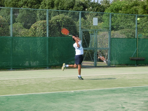 明日は、会場であるマリンテニスパーク北村で12:30~14:00まで公式練習を行い、翌日の開会式に備えます。大阪は梅雨明けして連日35℃程の暑い日が続いています。インターハイの課題は、体力と暑さ対策です。練習時間は短いのですが、大阪の暑さに体を慣らしたいと思います。
