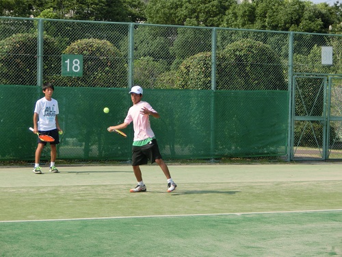 キャプテンの中村は、インターハイでダブルスの戦術に注目してきました。今年のインターハイでは、優勝した西宮甲英高校(兵庫)や準優勝の清風高校(大阪)のダブルスは、今までと違ったプレースタイルで大変参考になりました。秋の選抜予選までには、第二高校のダブルスを変えていきたいと思います。