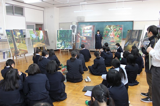 2年生は春休みに制作した油彩画の大作(F50~F100)の発表会を行いました。春休みといってもほとんどの生徒が毎日部活動に来て、制作に励んでいました。
