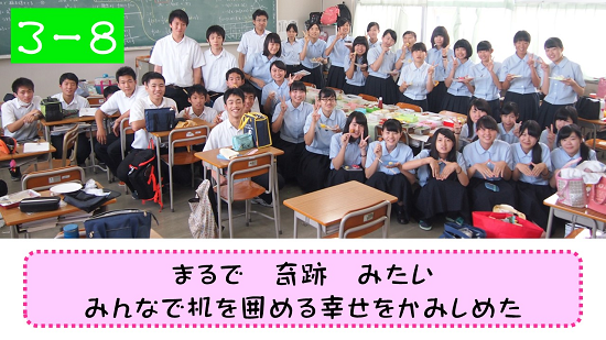 1年生1~4組へ向けて、プレハブ2階職員控室内