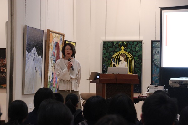 10月31日から11月5日まで、県立美術館分館にて高校美術展が行われました。最終日は表彰式と講演会が行われました。講師は女子美術大学芸術学部アート・デザイン表現学科アートプロデュース表現領域 准教授 日沼禎子先生です。