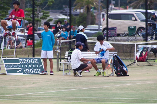 国体予選後は、テニスの初心者講習会でコーチとして参加されていた藤原里華プロと本村剛一プロにヒッティングをしていただきました。さすがプロのボールは違います。大きな刺激を受けて、来週の九州ジュニア、そして8月のインターハイに臨みます。