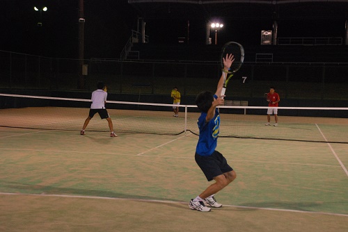 終業式を前にインターハイ組は、場所を代えて練習に励みました。練習はストローク、ボレー、サーブ、リターンといった基本プレーの繰り返しが中心で、最後にダブルスのミニゲームを行いました。全国レベルのテニスを意識して、しっかりスイングすること、そして強いボールを打つことを意識しました。