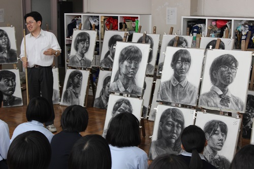 2年生、最初の課題は自画像。木炭デッサンに取り組みました。講評会では皆メモを片手に真剣な表情でした。今後は先輩として新1年生のお手本となってくれることでしょう。