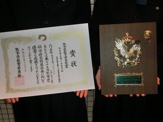 熊本県科学研究物展示会(第75回科学展)において2位の熊本県教育委員会賞を受賞することができました!!