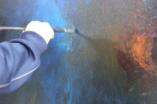 背中と手が美術科らしくなってきました。