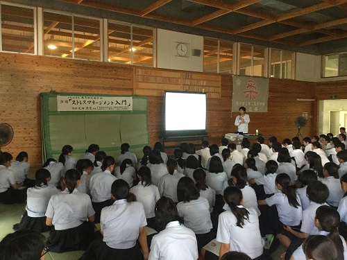 9月15日(木)のLHRの時間、2年生は、スクールカウンセラーの疋田先生からストレスマネジメント講座をしていただきました。