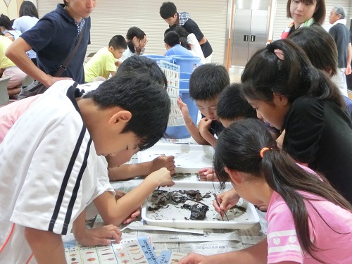 小学生対象の体験学習ですが、高校生の生物部員も楽しみながら自然について学ぶいい機会となっています。小学生の無邪気さに負けないくらい生物部員も元気に勉強しました。