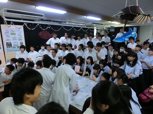 例年、生物部の展示発表は好評で、多くの方に見ていただいています。昨年は、海の生物を展示したタッチプールやニワトリの解剖が大人気でした。今年も次のような展示発表を計画しています。是非、ご覧下さい。
