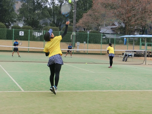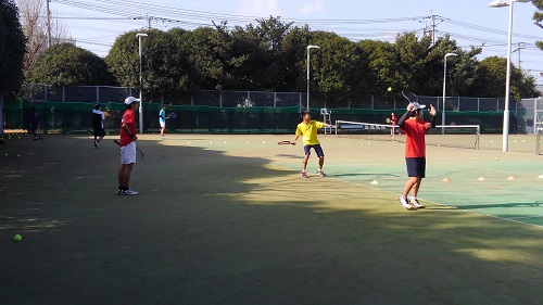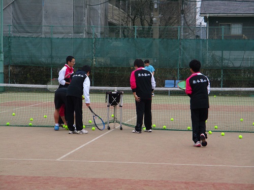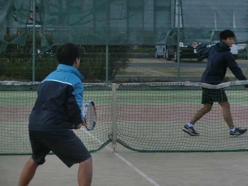 12月22日は終業式で、17日間の冬休みが始まります。冬休み期間中は近くの熊本県立大学のテニスコートを借りての練習です。1月6,7日に冬季ダブルスとスリクソンカップ(1年生団体戦)があるので、冬休みは実践練習が中心となります。もちろん基本は大事です。