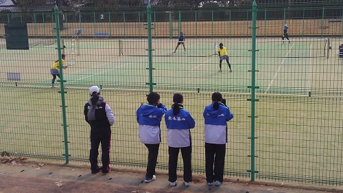12月23日は冬季ダブルスのCクラスの試合がありました。Cクラスに出場できるのは1年生のみで、第二高校からは男女それぞれ4組の8人、合計16人が冬の寒さの中でプレーしました。