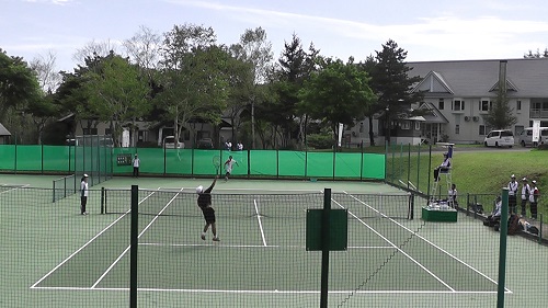 国体のテニス競技は、団体戦方式で、シングルス2、ダブルス1で戦います。木村選手は第2シングルスとダブルスに出場しました。