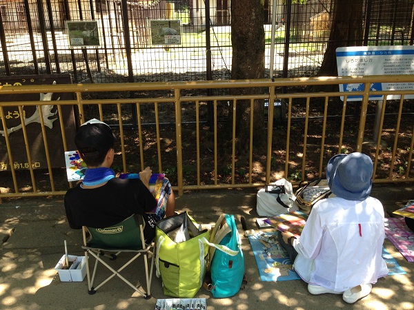 今年も動植物園で写生大会が開催されました。県内の高校生美術部の生徒達が一同に集まり、6時間近くかけて制作を行います。炎天下の中、体調不良も出ることなくなんとか無事終えることができました。皆、力作ばかりで見ごたえのあるものでしたよ。